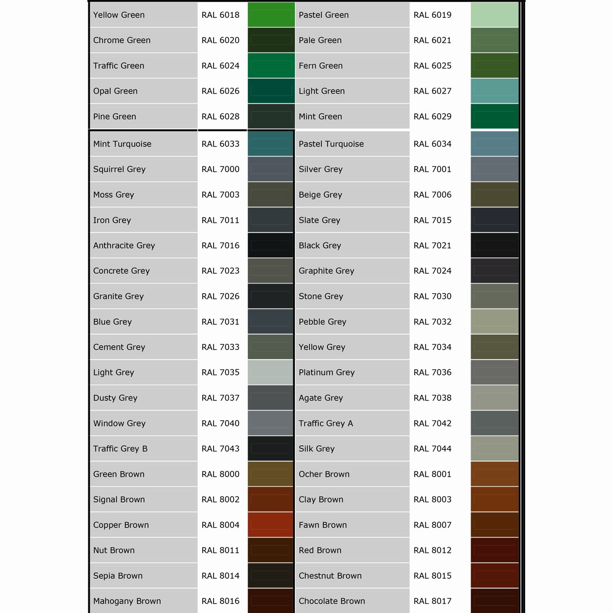 RAL COLOUR CHART